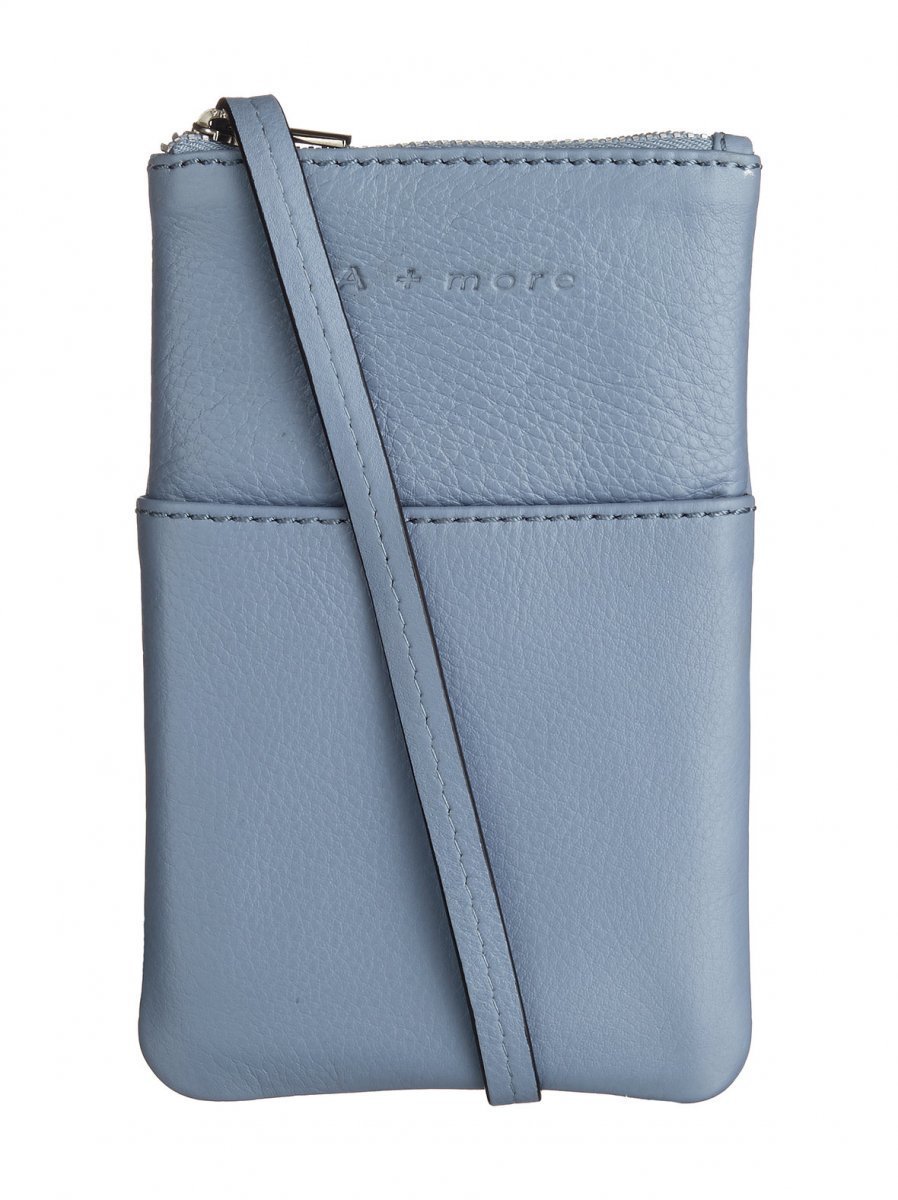 Pieni nahkalaukku on erinomainen esimerkiksi matkapuhelimelle. Laukussa on siro olkahihna. Laukku suljetaan vetoketjulla ja sisällä on tekstiilivuori.