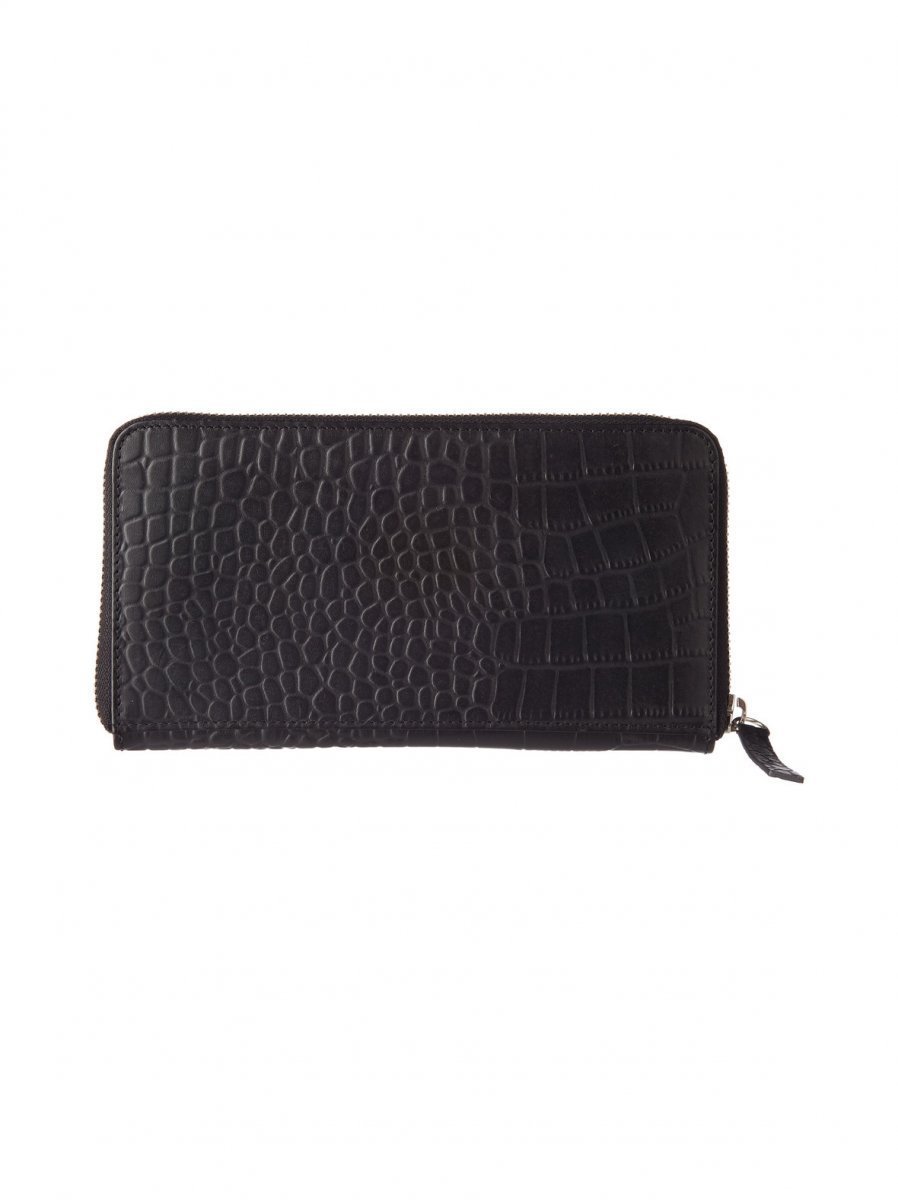Tyylikkäässä A more -lompakossa on upea krokotiilinnahkaa muistuttava pintakuviointi. Sisäpuolella on useita korttitaskuja ja vetoketjullinen kolikkotasku. Lompakko suljetaan vetoketjulla.