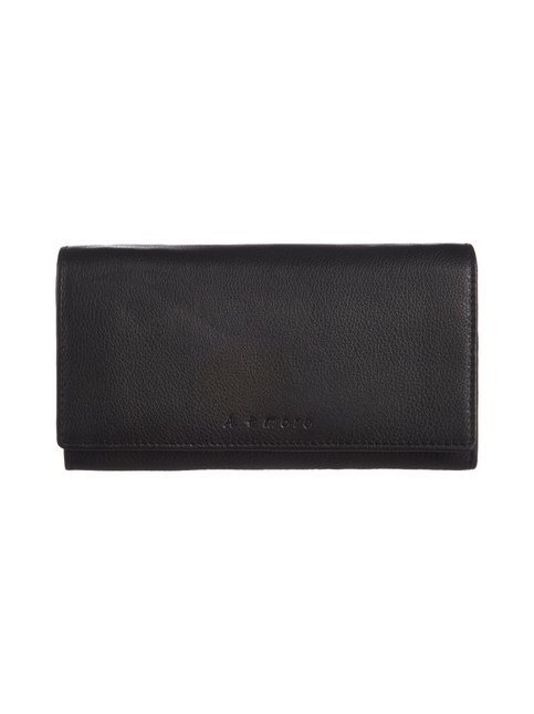 A+moren tyylikkäässä nahkalompakossa on runsaasti korttitaskuja, erilaisia avotaskuja ja kaksi vetoketjua. Lompakossa on painonappikiinnitys.