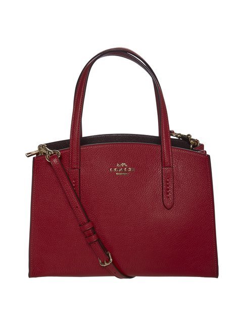 Nahkaisessa Coach Charlie -laukussa on kevyesti kohokuvioitu pinta, kiinteät kantohihnat ja irrotettava, säädettävä olkahihna. Sisäpuolella on tilanjakajana toimiva vetoketjutasku ja pienempi avotasku.