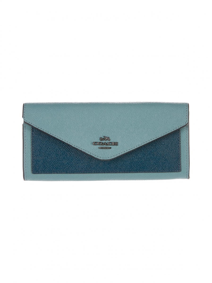 Kahden erivärisen, eläväpintaisen nahkan yhdistelmä antaa tyylikkään ilmeen Coachin lompakolle. Kapeassa lompakossa on avoin tasku etupuolella ja vetoketjutasku taustapuolella. Sisäpuolella on setelitasku ja kahdeksan korttitaskua. Sisäpuolella on lisäksi avointa tilaa vaikka puhelimelle, minkä ansiosta lompakko toimii tarvittaessa myös pienenä clutch-laukkuna.