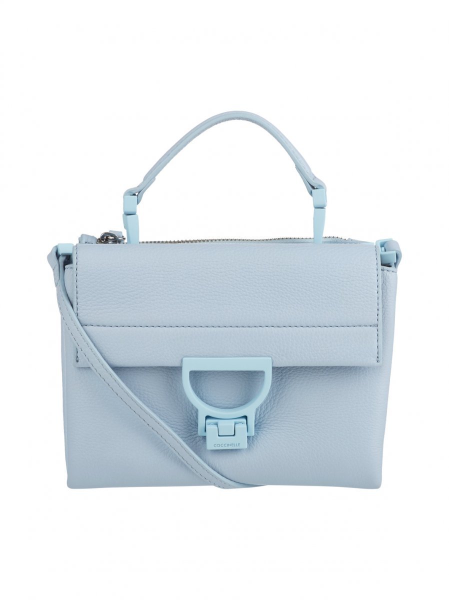 Ihastuttavassa Coccinelle Arlettis -pikkulaukussa on kaksi erillistä osiota, joista toinen suljetaan vetoketjulla ja toinen soljellisella läpällä. Mattapintaiset, värilliset metallisoljet tuovat laukkuun ilmettä ja mahdollistavat olkahihnan vaihtamisen näppärästi lyhyestä kantohihnasta pidempään, säädettävään olkahihnaan. Laukun sivuilla on painonapit, jotka avaamalla laukkuun saa kätevästi lisätilaa.