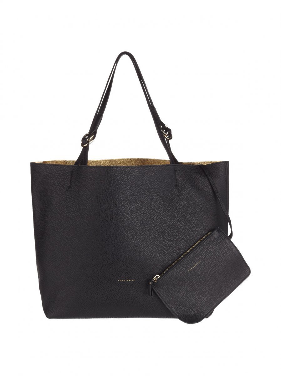 Tilavaan shopper-laukkuun mahtuu kaikki päivän aikana tarvittava. Pehmeänahkaisen laukun sisäpuolta piristää kullanhohtoinen pinta, olkahihnat ovat säädettävissä. Laukun mukana tulee pieni clutch-laukku, jota voi käyttää laukkuun kiinnitettynä tai erikseen.