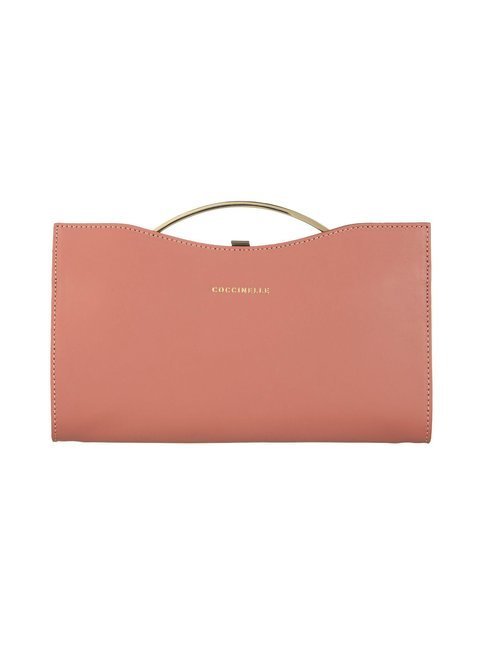 Nahkaisessa pikkulaukussa on upea, metallinen kantokahva. Sisäpuolella on vuorikangas, avointa tilaa, vetoketjutasku sekä kolme korttilokeroa.