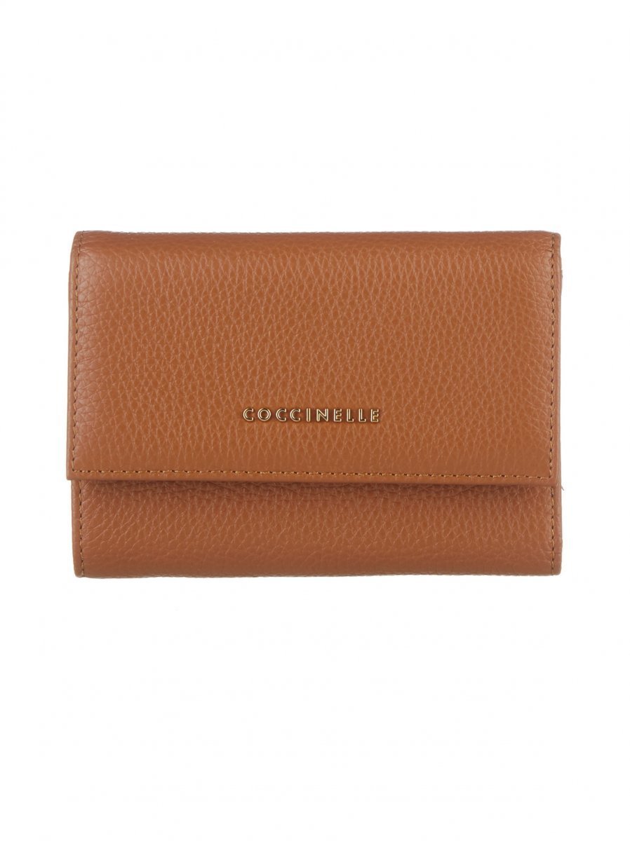 Tilavassa nahkalompakossa on pehmeä pinta, jota somistaa metallinen logoteksti. Painonapillisen läpän alla on runsaasti korttitaskuja, tekstiilivuorisia avotaskuja sekä vetoketjullinen pikkutasku. Lompakon takana on lisäksi erillinen, vetoketjulla suljettava kolikkotasku.