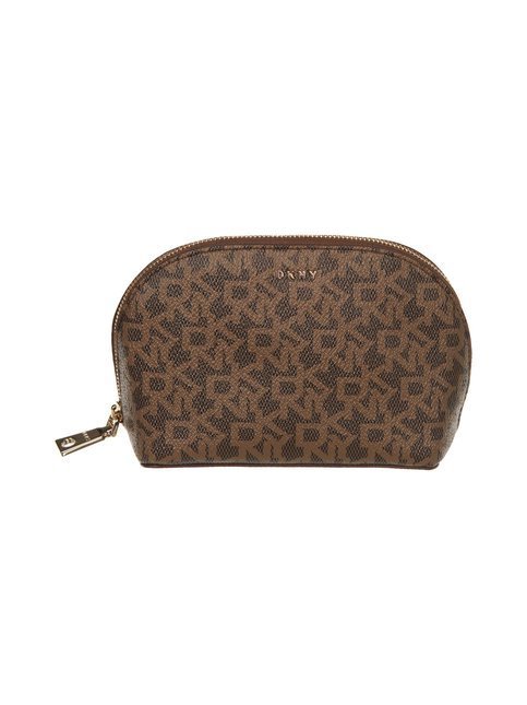 Donna Karanin sievää Bryant-kosmetiikkalaukkua koristavat metallinen logoteksti sekä logokuvioitu pinta. Kompaktissa laukussa kulkevat esimerkiksi päivän aikana tarvitsemasi meikit tai lyhyen matkan kosmetiikkapurkit. Laukku suljetaan vetoketjulla, ja sen sisäpuolella on avoimen tilan lisäksi pieni avotasku.