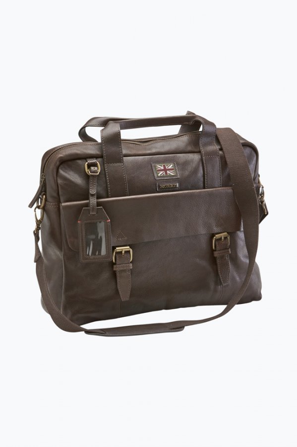 Morris-tietokonelaukku napakkaa nahkaa. Kantokahvat ja irrotettava, säädettävä kangasolkahihna. Ulkopuolella iso lokero kummallakin sivulla – toisessa kansi ja magneettilukko, toisessa vain magneettilukko. Sisällä kevyesti topattu tietokonelokero sekä yksi vetoketjullinen lokero. Laukku suljetaan yläreunasta vetoketjulla. L41 x K34 x S9 cm. 100% nahkaa