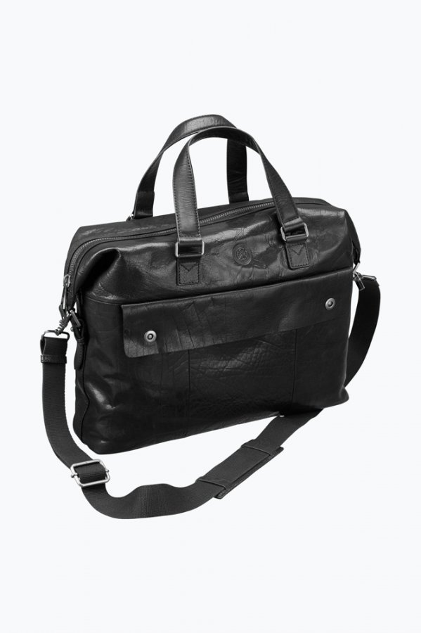 Saddler-laukku ylellistä, laadukasta, pintakuvioitua ja kiiltävää nahkaa. Irrotettava, säädettävä kankainen olkahihna. Ulkopuolella iso tasku, jossa kansi ja painonapit. Laukku suljetaan metallivetoketjulla. Sisällä vuori ja vetoketjutasku. L 40 x K 31 x S 10 cm. 100% nahkaa