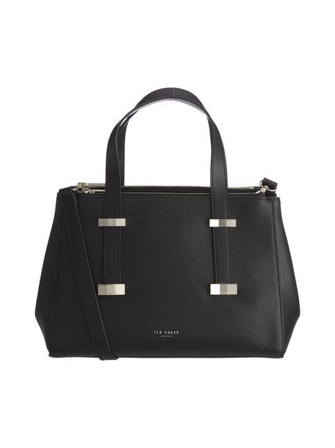 Kaunis muotoilu ja metalliset rusettisomisteet tyylittävät Alyssaa Bow Adjustabl -nahkalaukkua. Sisäpuolella on kaksi erillistä vetoketjutaskua sekä avoin osio, jonka sisäpuolella on kuvioitu tekstiilivuori, vetoketjutasku sekä kaksi avotaskua. Molempien päiden painonapit avaamalla laukkuun saa tarvittaessa lisää tilaa. Laukussa on lisäksi irrotettava olkahihna ja metallinastat pohjassa.
