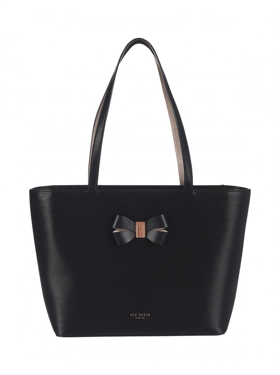 Ted Bakerin rusettisomisteinen Bowmisa-nahkalaukku viimeistelee elegantin tyylin. Vetoketjulla suljettavassa laukussa on kaunis tekstuuri ja sirot kantohihnat. Sisäpuolella on tekstiilivuori, kolme sivutaskua ja lisäksi metallinhohtoinen pikkulaukku, jonka voit napata sellaisenaan matkaan lähtiessäsi illanviettoon. Pikkulaukun mitat 25 x 15 cm.