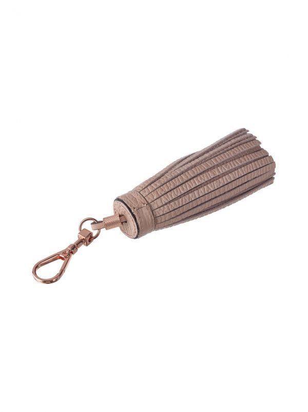 Ripusta elegantti pehmeästä nahasta valmistettu laukkukoru lempilaukkuasi koristamaan. Koristeessa on klipsilukko.