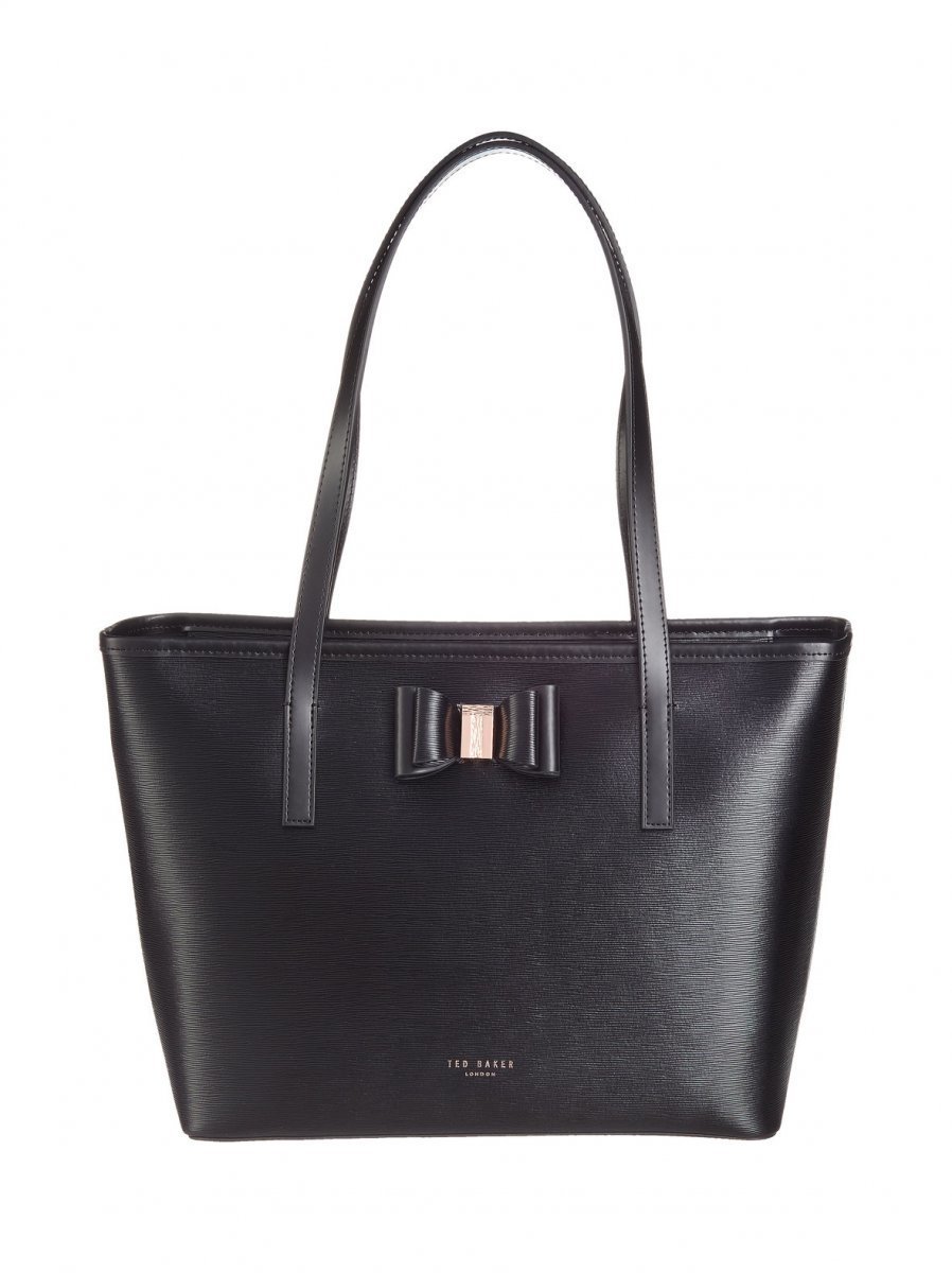 Elegantti ja käytännöllinen shopper-laukku täydentyy monikäyttöisellä kirjekuorilaukulla, jota voi käyttää erikseen tai laukun kanssa kätevänä lompakkona. Kestävän nahkalaukun kapeat olkahihnat ylettyvät juuri sopivasti olalle ja etusivuilla on viehättävä rusettisomiste. Molemmat laukut suljetaan vetoketjulla. Kirjekuorilaukku on mitoiltaan 27 x 17 cm.